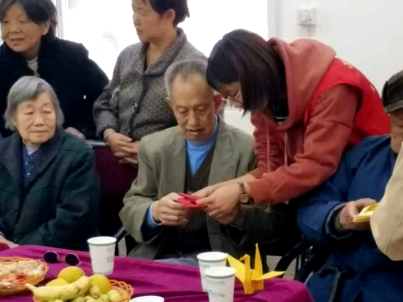 节目虽少,但却让人真真切切的感受到他们对老人的美好祝福,老人们也认真地观看了他们的节目,并送上他们最热烈的掌声,脸上的微笑也是最好回应。表演虽然结束了,但热情还在持续,与老人的互动也是非常温馨的环节。手部操,折纸,老人们在志愿者们的带动和指导下,身心都动了起来,这对他们健康也是非常有益的。