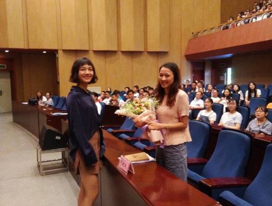 学生代表为到场老师献花