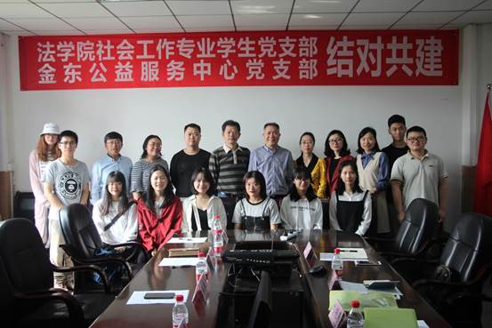 青春向家国,建功新时代。为提升党支部组织力,充分发挥党支部战斗堡垒作用,促进支部合作共创,5月12日,法学院社会工作学生党支部与金东公益服务中心党支部联合开展共建共话活动。校党委统战部部长张昌元、院党委书记兰力平、院党委副书记于百江、校地合作办公室主任杜鹏、社会工作专业教研室章晓、社会工作学生党支部书记肖丹、金东公益服务中心副总刘艳春、金东公益服务中心党支部书记古茜以及社工党支部学生党员代表出席本次活动。