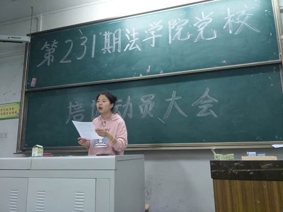 为端正入党积极分子入党动机,进一步学习党的政策领悟党的精神,提高入党分子党校学习的积极性,帮助入积极分子们走好入党的第一步。法学院第231期党校培训动员大会,5月29日晚九点三十分于博学楼B304召开。