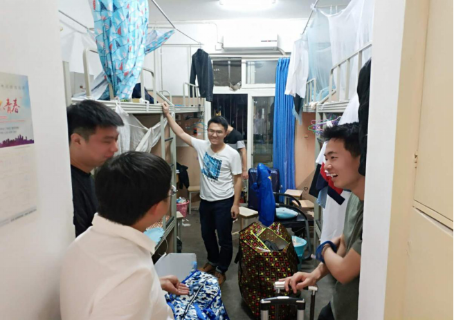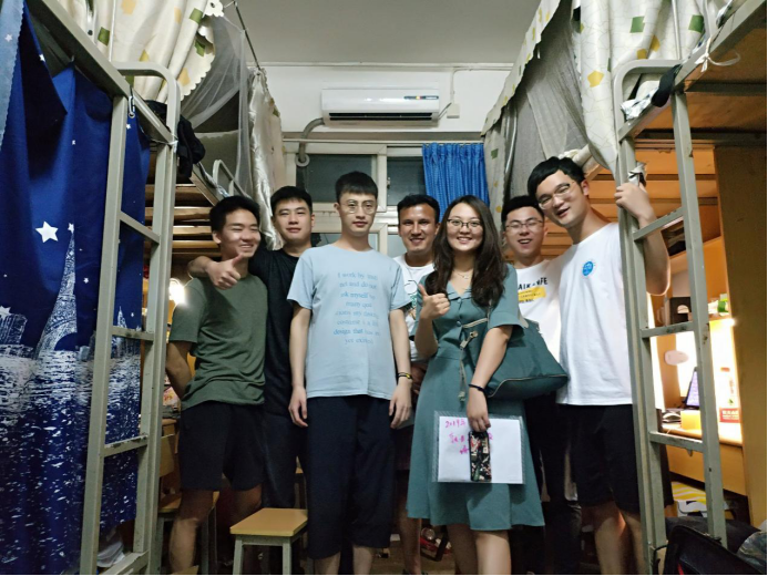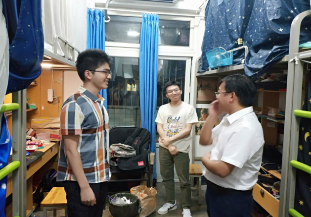 2019年6月21日晚,法学院党委副书记于百江、2019届毕业生辅导员杨可瀚老师深入毕业生寝室走访交流,开展文明离校教育,与学生聊工作、讲未来,谈人生,并与同学们合影留恋,送别2019届毕业生。