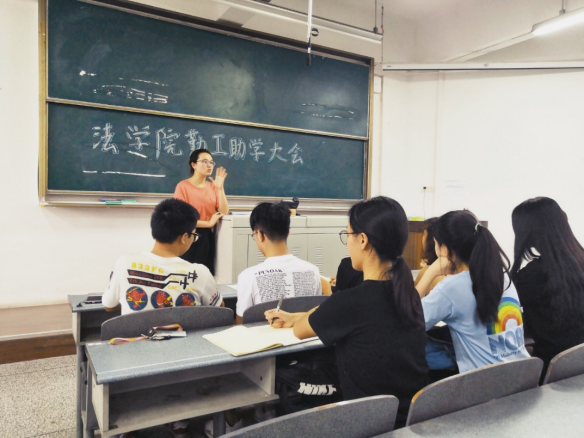 法学院2018-2019学年勤工助学大会于6月27日18时30分在博学楼A501准时召开,法学院2015级辅导员杨可瀚老师组织主持会议,各年级部分学工助理及实验室学助参与此次培训总结大会。