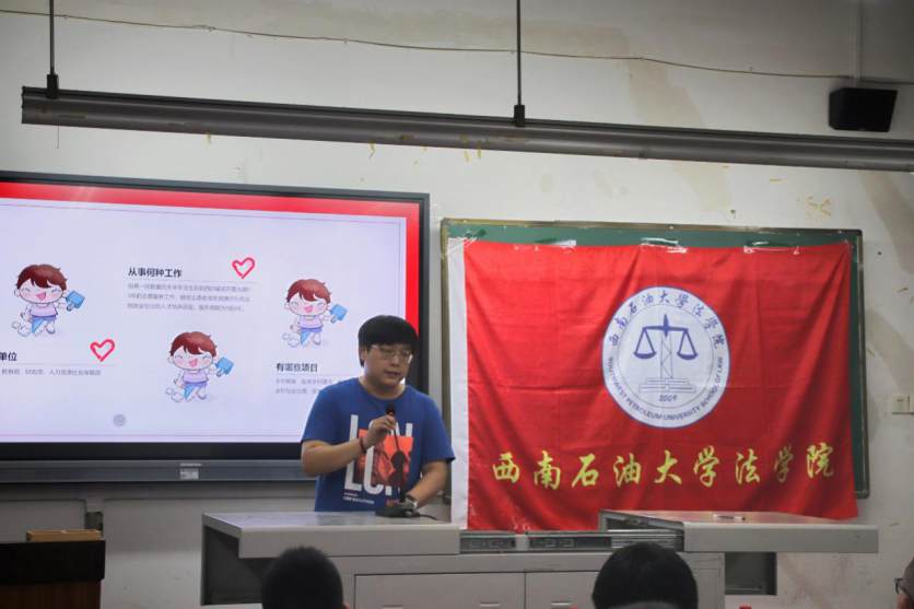 为应对大学生就业难题,响应国家政策与号召,引导鼓励大学生到基层服务和就业,我院特别邀请到来自基层就业的优秀工作者以及四川省大学生西部计划的负责人进行宣讲,于5月14日晚在博学楼B104开展了2021年国家基层就业分享会。出席本次活动的嘉宾有大学生村官徐召威和四川省大学生西部计划负责人李金航。