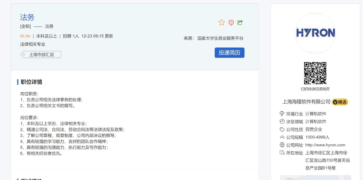 (一)岗位职责:1、负责公司相关法律事务的处理;2、负责公司相关文书的撰写。