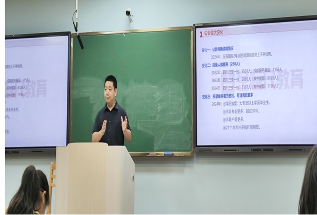 为进一步增强我校学生对“三支一扶”计划的认识,激发同学们投身社会建设事业的热情,金标尺机构于2024年5月30日在思学楼C209开展了三支一扶基层就业项目备考公益讲座。