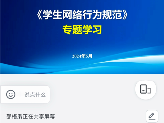邵老师教育学生强化人身、财产、饮食、治安、消防、交通等方面安全意识,谨防溺水、火灾、盗窃、抢劫、传销、电信诈骗、非法网贷和意外伤害等,了解遭遇突发情况的应急处理方法。教育学生遵纪守法,不参加可能危及人身安全的活动,不参与非法集会、非法游行、非法组织、非法宗教活动,不涉足有碍身心健康的场所。提醒学生当好自身健康第一责任人,加强身体锻炼,保持健康生活方式,关注自身健康状况,身体如有不适及时就医。接着,邵老师开展了网络行为规范主题班会,引导学生依法依规、诚实守信、健康文明地实施网络行为,营造良好网络生态、构建风清气正的网络空间。