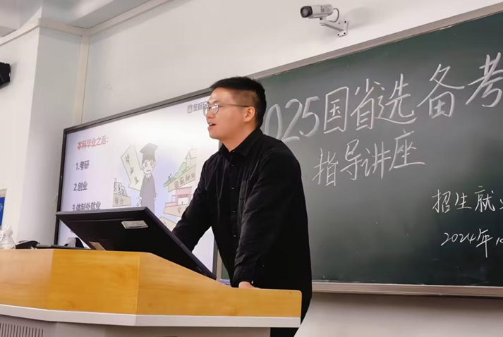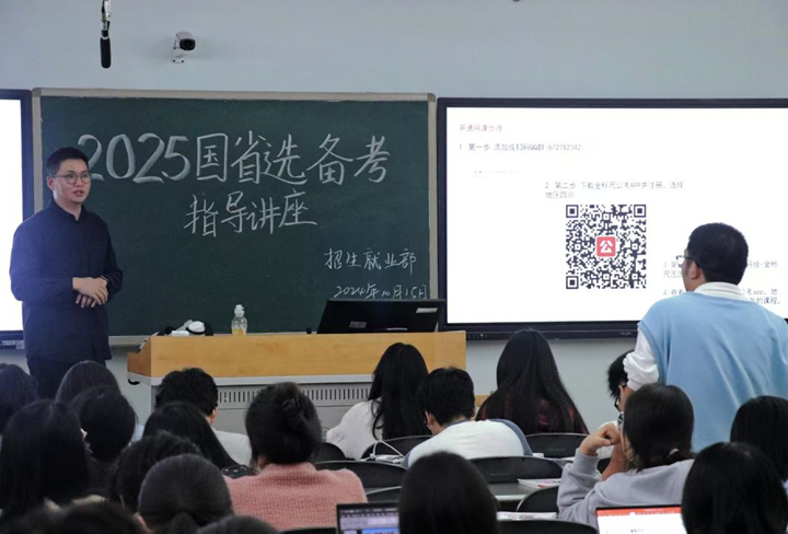 讲座中,程涛老师分别从大学生就业形势、国考省考选调生基本情况、如何选择适合自己的岗位、怎样科学备考的四个方面为同学们进行了指导。程涛老师详细解析了国考、省考及选调生的报名条件、选拔程序、培养方向及职业发展路径等基本情况,帮助同学们全面了解各类考试的异同点。同时,他强调,在选岗时,同学们需要了解各个岗位的招聘需求,分析自己的兴趣、专业背景、工作经验及技能特长等因素,以便找到最适合自己的岗位。程涛老师指出,要科学备考,熟悉行测科目的各个知识点;加强申论写作训练,提高写作水平和表达能力。