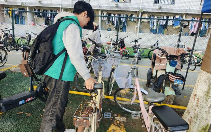 志愿者在摆放单车