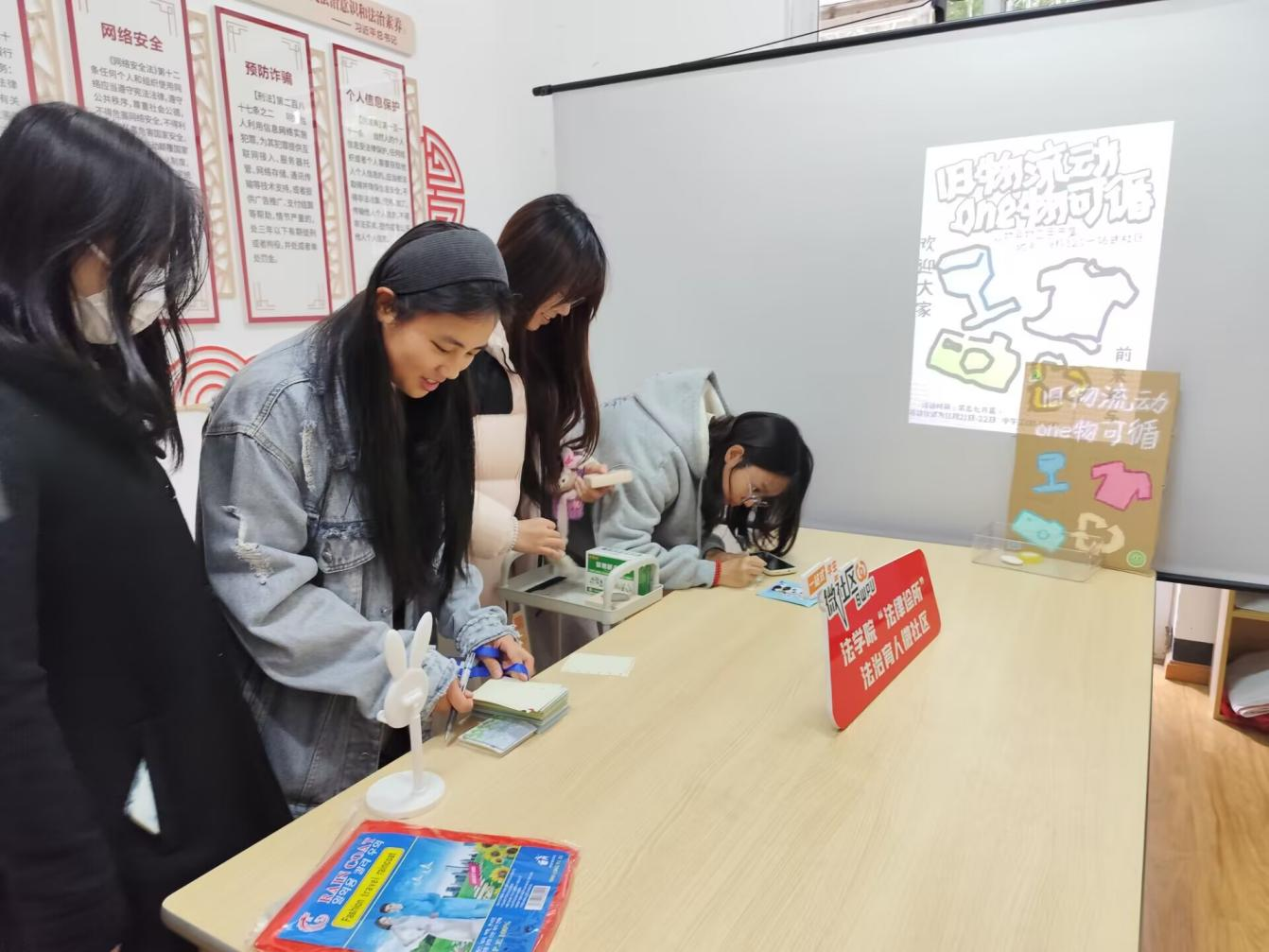 近日,由我校法学院学生会生活部主办,法学院团委社区服务部、法学院学生会权益维护部合办的“绿色流动站——旧物流动,one 物可循”启动仪式8栋法学院一站式微社区举行。活动吸引了众多学生的广泛关注与积极参与,现场气氛热烈非凡,掀起了一股绿色环保的热潮,为校园环保事业注入了一股崭新活力。本次活动旨在提高同学们的环保意识,促进资源的循环利用,同时为大家提供一个交流互动的平台。