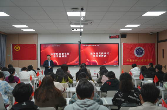 会上,法学院党委书记张华春代表学院向本期“青马工程”班顺利开班表示热烈祝贺,并预祝所有学员能学有所获,学有所成。他对全体学员提出几点期望:“一是要珍惜此次宝贵的学习机会,全面提升自身在德智体美劳各方面的素质和综合能力;二是要坚定信仰,明确个人发展方向,勇于担当起新时代的重任;三是要涵养德行,在学习与生活中树立榜样,积极发挥引领作用,努力为中华民族伟大复兴贡献自己的力量。”
