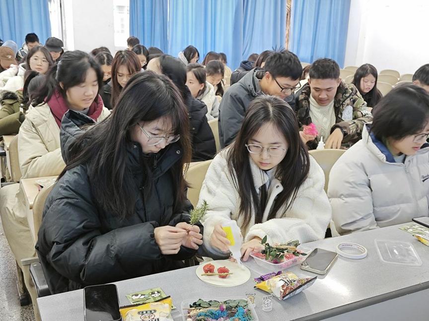 活动伊始,会员们怀揣着期待陆续进入教室。签到表上一个个名字,如同跳动的音符,奏响了活动的序曲。主持人以充满活力的开场白,拉开了这场活动的大幕,首先向大家介绍了朝阳社工协会的基本情况和本学期协会所开展的活动,经过协会成员的共同努力,朝阳社工协会获得了很多奖项。之后开展了一系列趣味游戏将活动推向高潮。“大、小西瓜” 游戏中,会员们快速反应,根据指令做出相反动作,现场笑声不断;“拍七令” 游戏则考验了大家的反应速度和注意力,紧张刺激的氛围让会员们沉浸其中;而 “趣味游园会” 更是使整个氛围变得更加轻松和愉快。最后的互动手工环节 “干花盛绽冬艺”充分展现了会员们的创意,大家将干花巧妙搭配,每一朵花的摆放都独具创意,每一件手工艺品都是他们内心艺术灵感的外在体现。