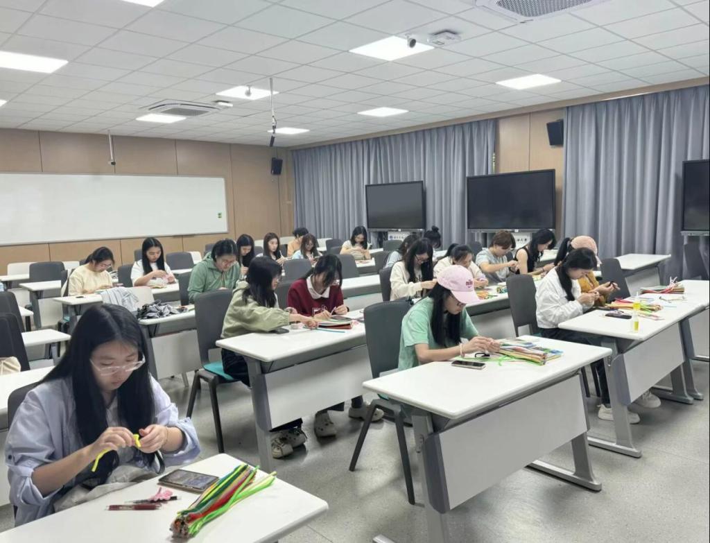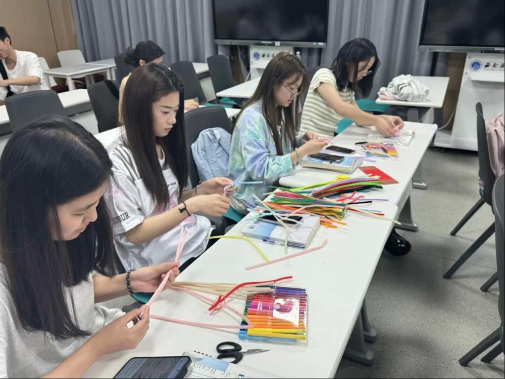 活动将知识与创意实践相结合,首先以一场生动的环保知识宣讲拉开序幕,主持人通过详细地讲解与分析,向同学们揭示了当前地球面临的生态挑战。随后,参与者们沉浸式体验了“扭出地球新‘花’样”环节——利用彩色扭扭棒编织地球图景。活动中,各位同学乐在其中,充分发挥想象力,利用彩色扭扭棒制作了多种以地球为主题的手工作品。通过手工创作,同学们不仅感受到环保艺术的乐趣,更直观理解了保护地球生态多样性的重要性。