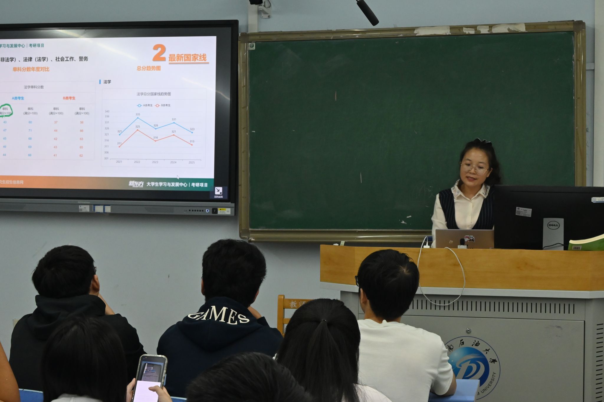为助力2027届考研学子科学规划备考路径、打破信息壁垒,西南石油大学法学院联合新东方大学生学习与发展中心,于2025年9月18日在思学楼C202举办“精研笃行·筑梦研途”考研规划分享会。本次讲座特邀新东方全职教师潘芩担任主讲嘉宾,为法学院学子带来了一场干货满满的考研备考盛宴。