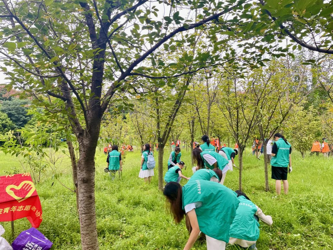 活动当天,天气宜人,习习凉风为志愿者们送来阵阵清爽。“小法柚”志愿者们身着统一服装,精神饱满地齐聚学子林。他们手拿铲子、垃圾袋等工具,脸上写满了热情与活力。经过活动负责人的简短动员,大家立即投入到清理工作中,认真清除林间的杂草,齐心维护学子林的洁净与美观。