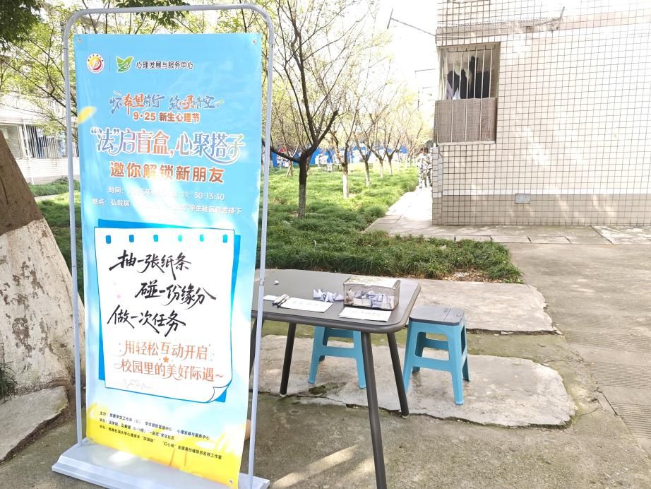 金秋九月,丹桂飘香,法学院迎来了一批满怀憧憬的新生。为帮助初入校园的萌新打破人际隔阂,快速融入集体,9月25日,由法学院学生会心理健康部主办、团委社区服务部协办的“‘法’启盲盒,心聚搭子”主题交友活动在弘毅居(8-10栋)“一站式”学生社区楼前温情启动,为全院学生搭建起一座充满惊喜与温暖的友谊桥梁。