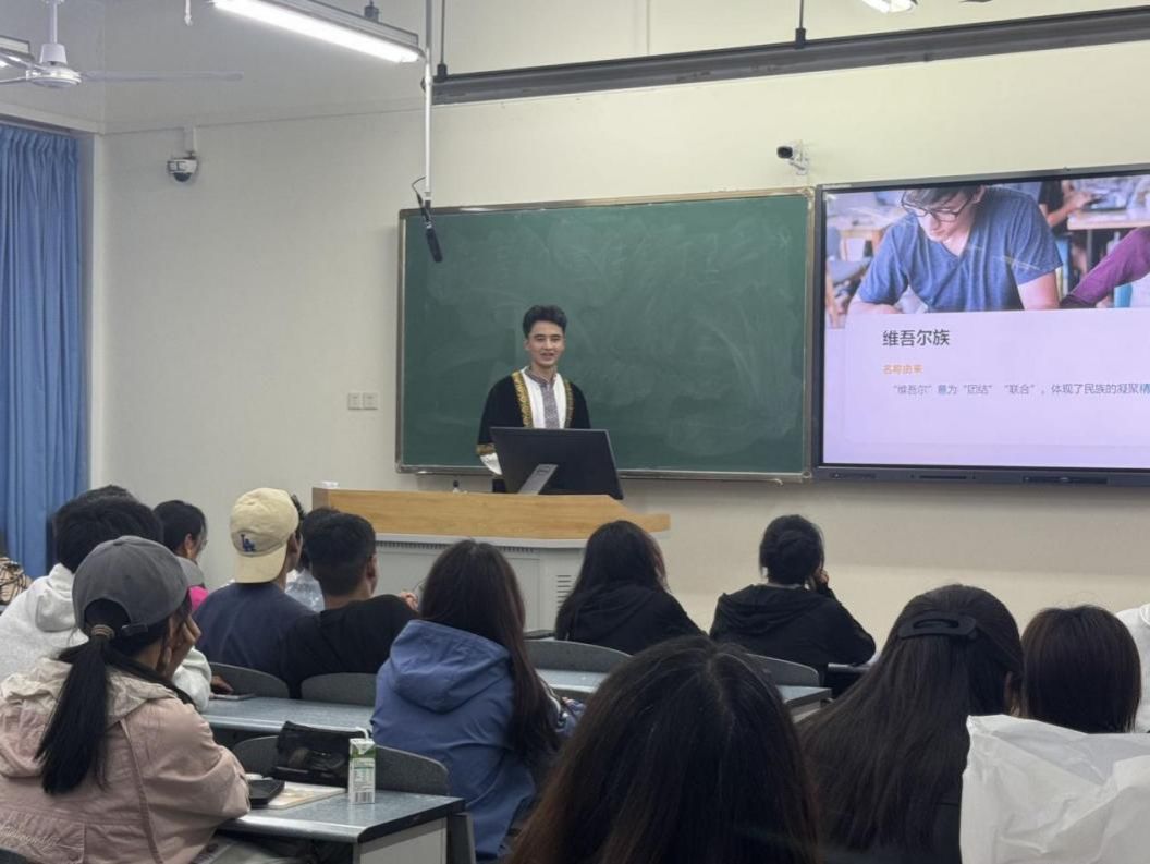 文化展示 , 多维呈现民族精粹 。 活动以民族特色分享为主线,五位学生代表依次登台,通过传统服饰展演、特色饮食解说、节日习俗溯源及语言文字演绎,生动诠释各民族文化的独特魅力。彝族火把节的炽热情怀、维吾尔族木卡姆的艺术韵律、满族 旗装 的典雅底蕴等鲜活案例,令现场观众沉浸于多元文化的 交融碰撞中。