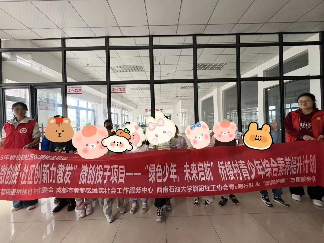 10 月 8 日,西南石油大学朝阳社工协会走进桥楼村,开展 “绿色少年,未来启航” 青少年综合素养提升活动,以多元形式播撒环保种子。活动中,志愿者带领青少年开展 “雪糕棍变废为宝” 手工创作,在动手实践中直观感受环保价值,树立绿色理念。