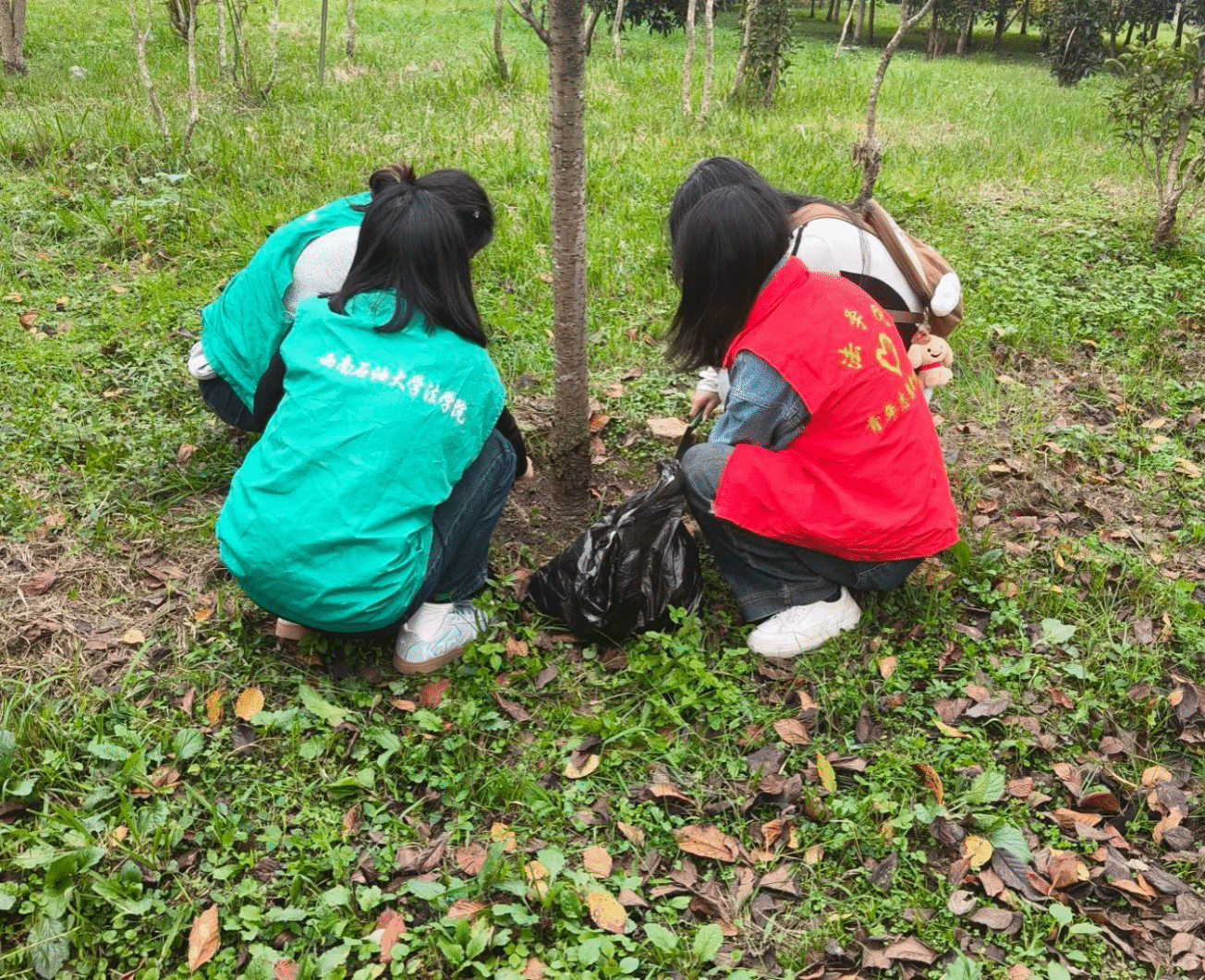 经过“小法柚”志愿者们半个小时的努力,学子林内的树木得到了精心的呵护。看着焕然一新的树木和干净整洁的地面,志愿者们的脸上露出了欣慰且满意的笑容。此次秋季学子林养护活动在大家的共同努力下圆满结束,但它所传递的绿色环保理念将在同学们的心中生根发芽,激励着更多石大学子为保护校园环境、建设美丽家园而不懈努力。学子林养护活动是学校长期开展的一项绿色环保活动,旨在通过实际行动,引导广大师生关注并保护石大的校园环境,积极参与到生态文明建设中来,此类活动不仅为石大校园文化建设添了一道亮丽的风景线,也推动了校园的可持续发展。