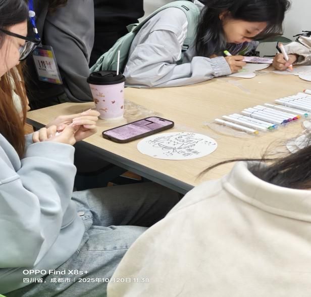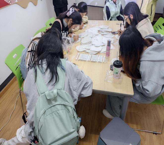 本次活动以“空白扇面”为情感传递载体,参与者随机领取其他同学的空白扇子,凭借初识印象或主动交流观察,为扇子主人“画像”,扇面完成后匿名展示,后续“认领”环节将活动推向高潮。活动尾声,大家围坐一圈,分享参与此次“扇绘识人”之旅的感受。同学纷纷表示,这个活动让他们放下了“社交恐惧”,在轻松愉快的创作与互动中,自然而然地认识了新朋友,感受到了校园大家庭的温暖与包容。