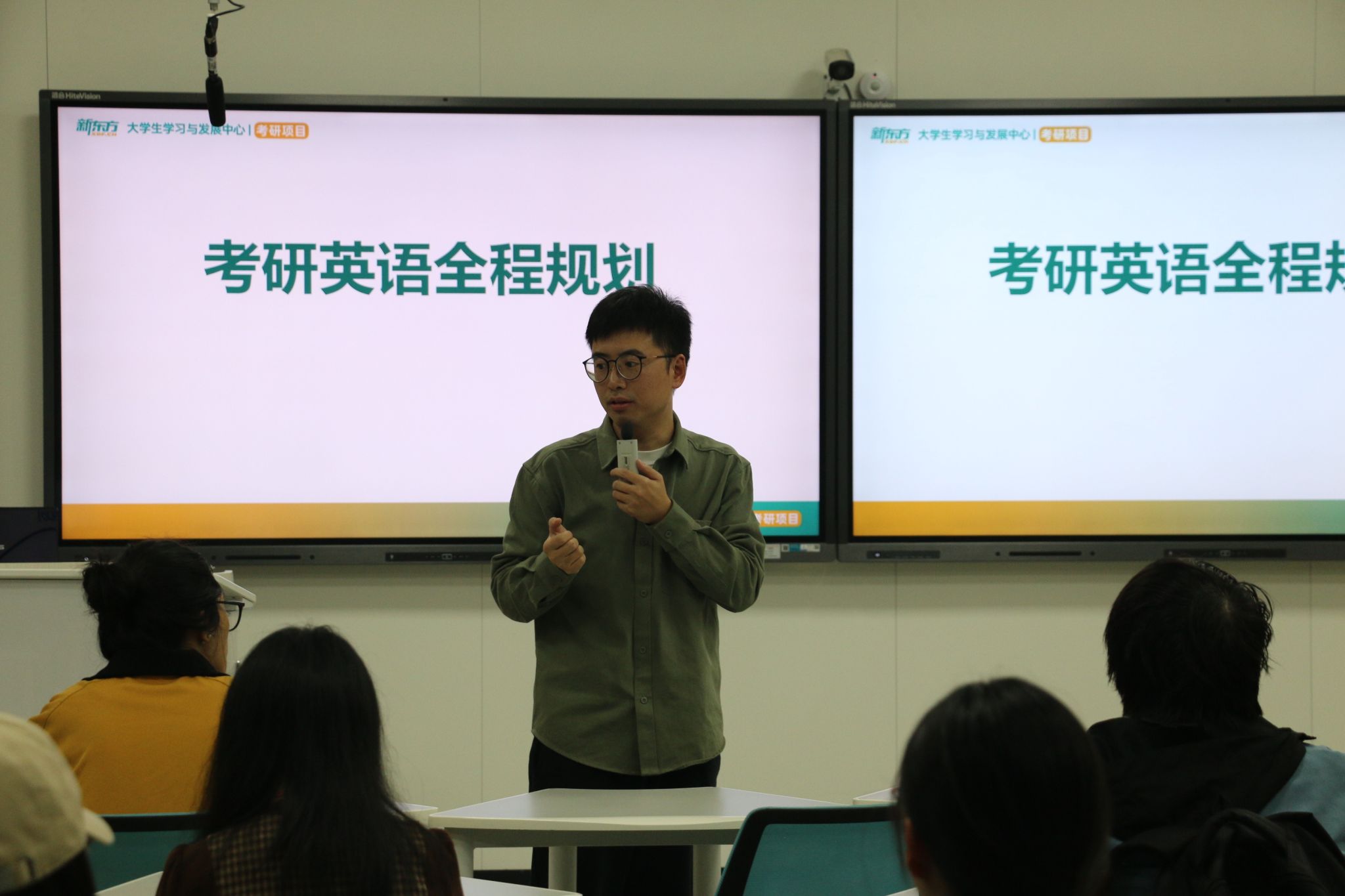 讲座中,许泽传老师结合自身深耕考研英语领域的丰富工作经历,就确定目标,学习计划,学习方法三个方面为学生的考研英语复习做出科学指引。