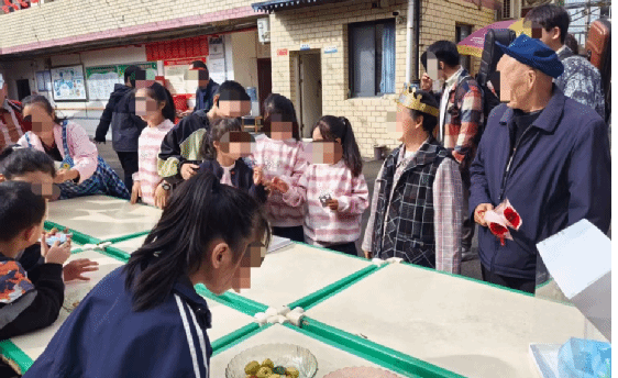 活动现场,孩子们精神抖擞,依次登台献艺。吉他独奏旋律轻快,指尖流转的音符勾起在场老人的青春回忆;合唱歌声清澈,真挚的情感感染着每一位听众,台下掌声此起彼伏。恰逢一位奶奶过生日,孩子们特意捧着鲜花和蛋糕走上前,围在老人身边齐唱生日歌,轻声送上“健康长寿”“天天开心”的祝福。收到惊喜的奶奶眼眶泛红:“这是我过得最热闹的生日,孩子们的祝福比啥都珍贵!”表演间隙,孩子们还主动为老人捶背揉肩,分享生活趣事,老少互动温馨有爱。