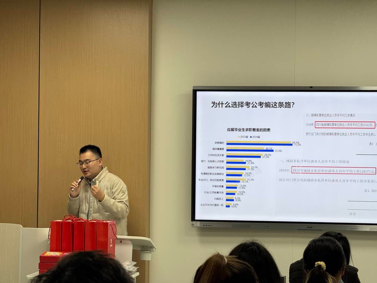 为进一步增强我校学生对2026年公务员考试的认识,激发同学们投身社会建设事业的热情,金标尺机构于2025年11月3日在博学楼A102开展了三支一扶基层就业项目备考公益讲座。