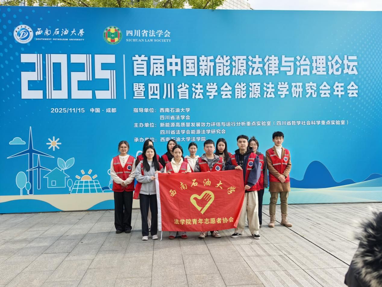 2025年11月15日,首届中国新能源法律与治理论坛暨2025年四川省法学会能源法学年会在西南石油大学图书馆学术汇报厅顺利举办,西南石油大学法学院志愿者团队全程投身会场志愿服务,为盛会圆满落幕筑牢保障。