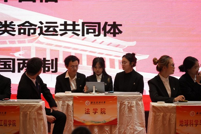 2025年11月25日晚7时,西南石油大学习近平新时代中国特色社会主义思想知识竞赛决赛在图书馆报告厅成功举行。法学院代表队由谷雨芯、倪可心、杨力瑞组成,三名学子凭借扎实的知识功底与出色的现场发挥,在激烈角逐中脱颖而出,荣获大赛一等奖。指导老师邓超越荣获“优秀指导老师”称号。