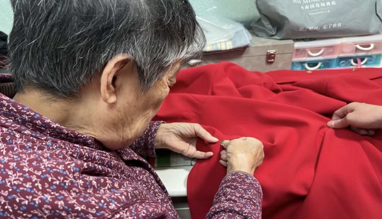 社区老人缝补衣物