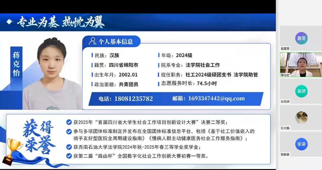 选手24级社会工作专业蒋克怡同学比赛照片
