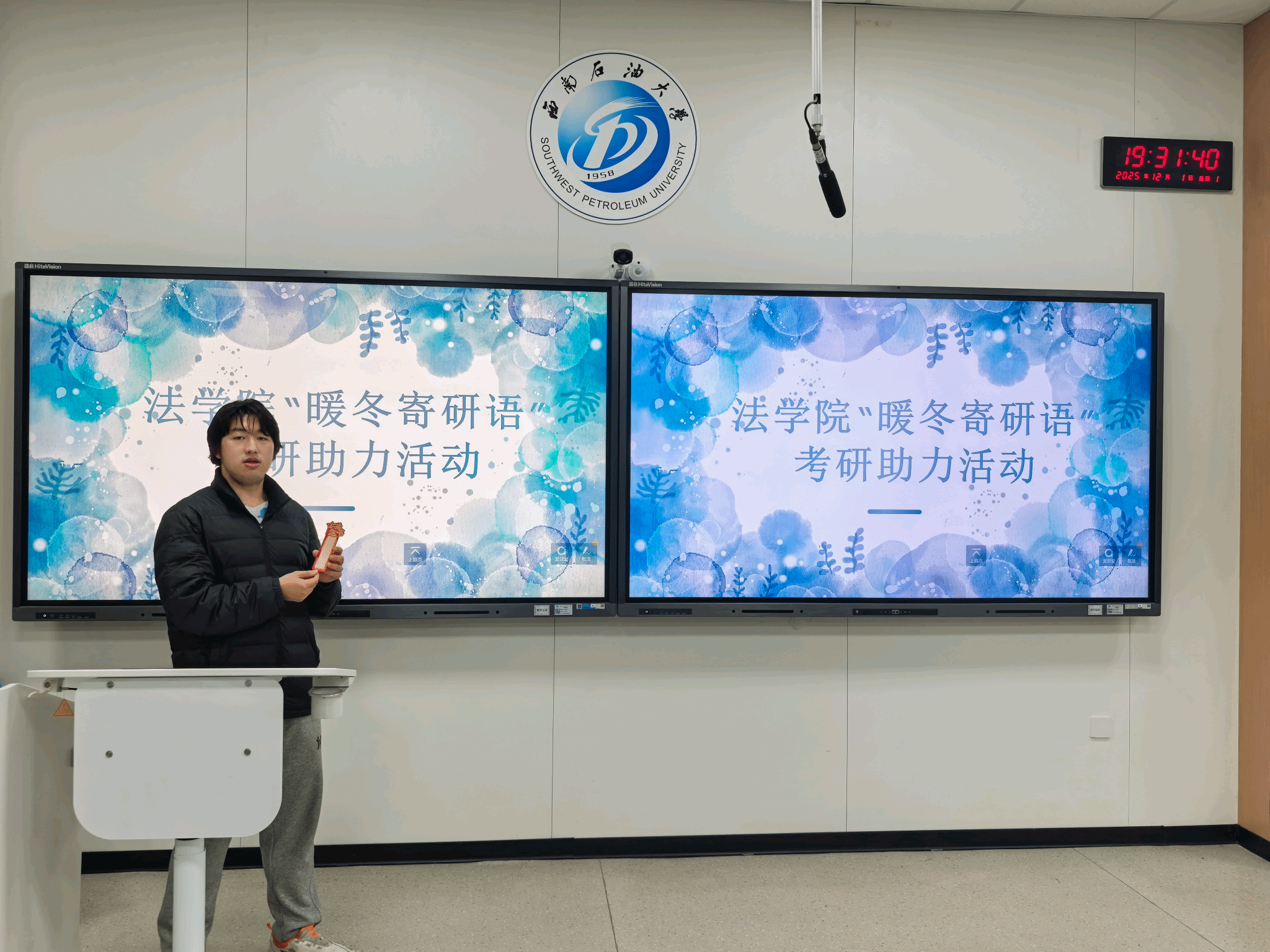 12月1日晚19:00~20:30,西南石油大学法学院暖心发起“暖冬寄研语”考研助力主题活动。活动在该院学生活动室举行,吸引了众多非毕业年级同学积极参与,旨在为正在紧张备考的毕业生送上真挚祝福与精神支持。