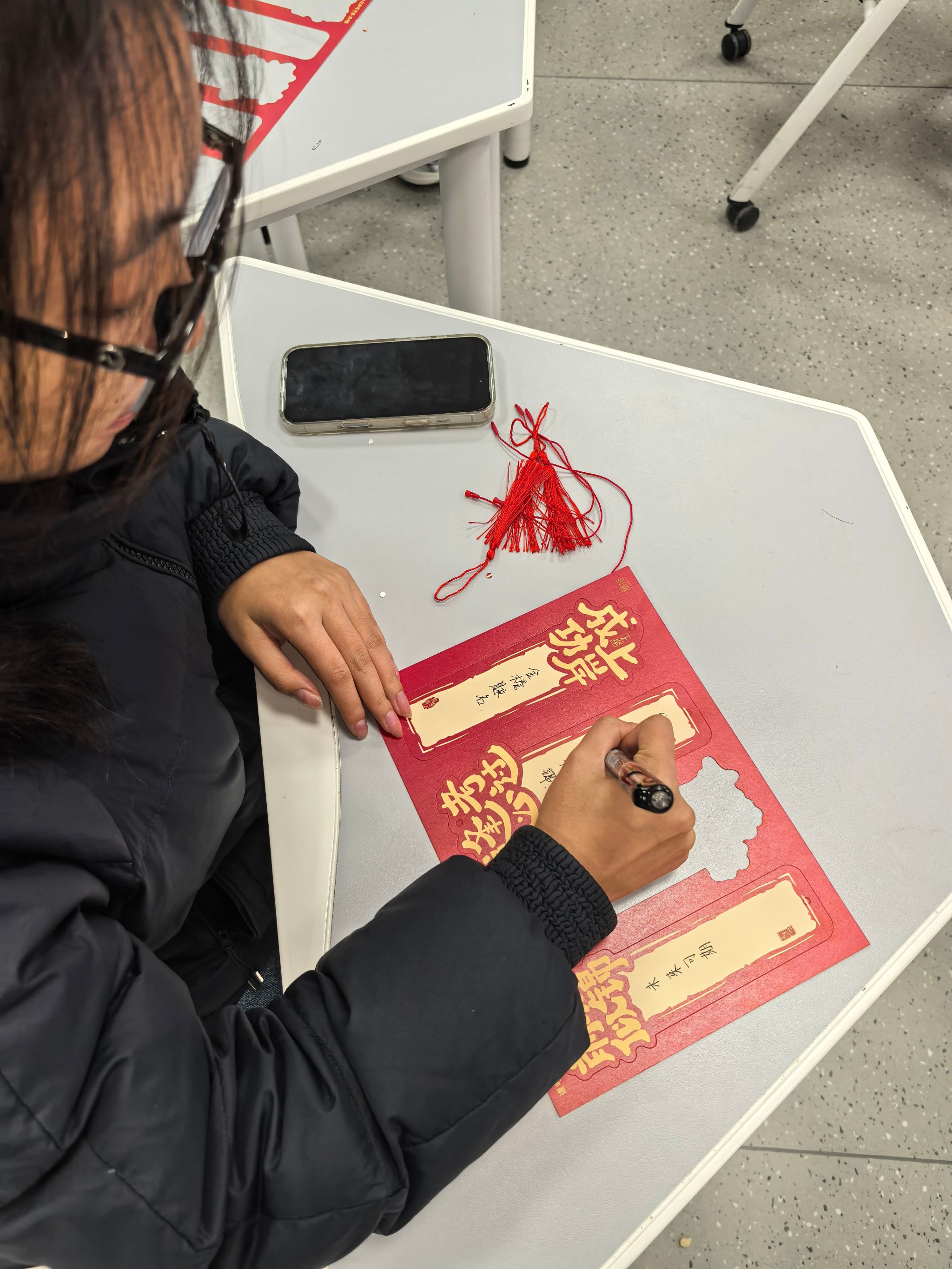 活动现场布置得温馨而鼓舞人心。同学们在精心准备的书签上,认真写下“一战成硕”“笔锋所至,梦想花开”等诚挚寄语,或分享个人备考心得,或绘上趣味简笔画。每一枚书签都承载着对自己与同窗前程的深切关怀与美好祝愿。随后,这些满载暖意的书签被统一收集整理分享,成为备考学子冲刺阶段一份特别的“能量补给”。收到祝福的备考同学纷纷表示,这份意外的惊喜让他们倍感温暖,倍增动力。