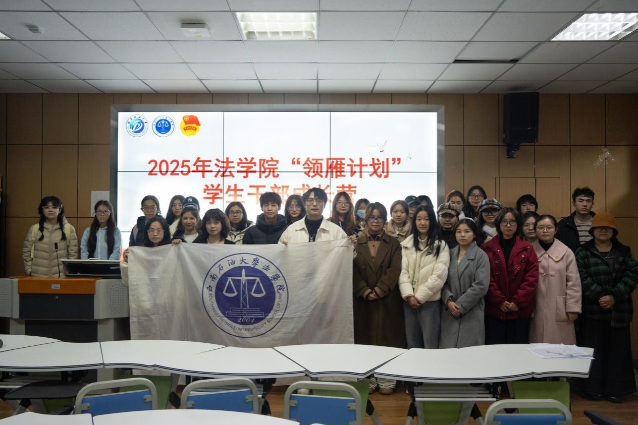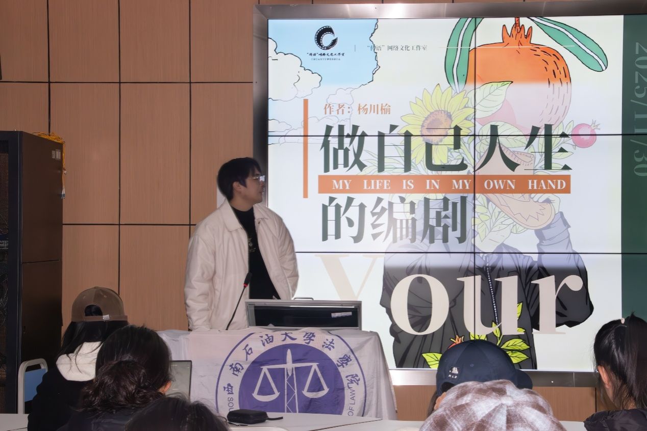 2025年11月30日晚,西南石油大学法学院“领雁计划”学生干部成长营第五场培训讲座——《做题Or做戏:做自己人生的编剧》,在博学楼A402教室成功开展。特邀西南石油大学第九届学生“飞翔奖”得主杨川榆同学担任主讲嘉宾,学院团学骨干积极参与。