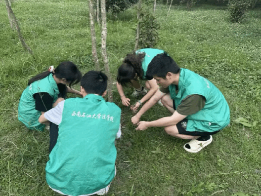 活动期间,“小法柚”们身着志愿者服装,按照预先划分的区域展开工作。志愿者们以小组为单位,重点清理林下隐蔽区域、树根部及石块周边的残留垃圾,包括塑料废弃物、烟蒂及枯枝杂物等。在清理过程中,志愿者们严格遵循“不破坏原有植被、不干扰区域生态”的原则,采用徒手捡拾与垃圾袋分装相结合的方式,有序完成各区域的清洁任务。全程组织规范、操作有序,未对学子林的自然环境造成任何额外影响。