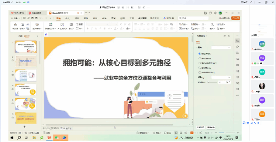 为帮助毕业班学生精准应对复杂就业形势,破解求职困惑,提升就业竞争力,12月4日晚,2022级兼职辅导员张由春老师以“拥抱可能:从核心目标到多元路径”为主题,开展就业主题班会,围绕“就业中的全方位资源整合与利用” 核心内容,为毕业生送上了一堂干货满满的求职指导课。