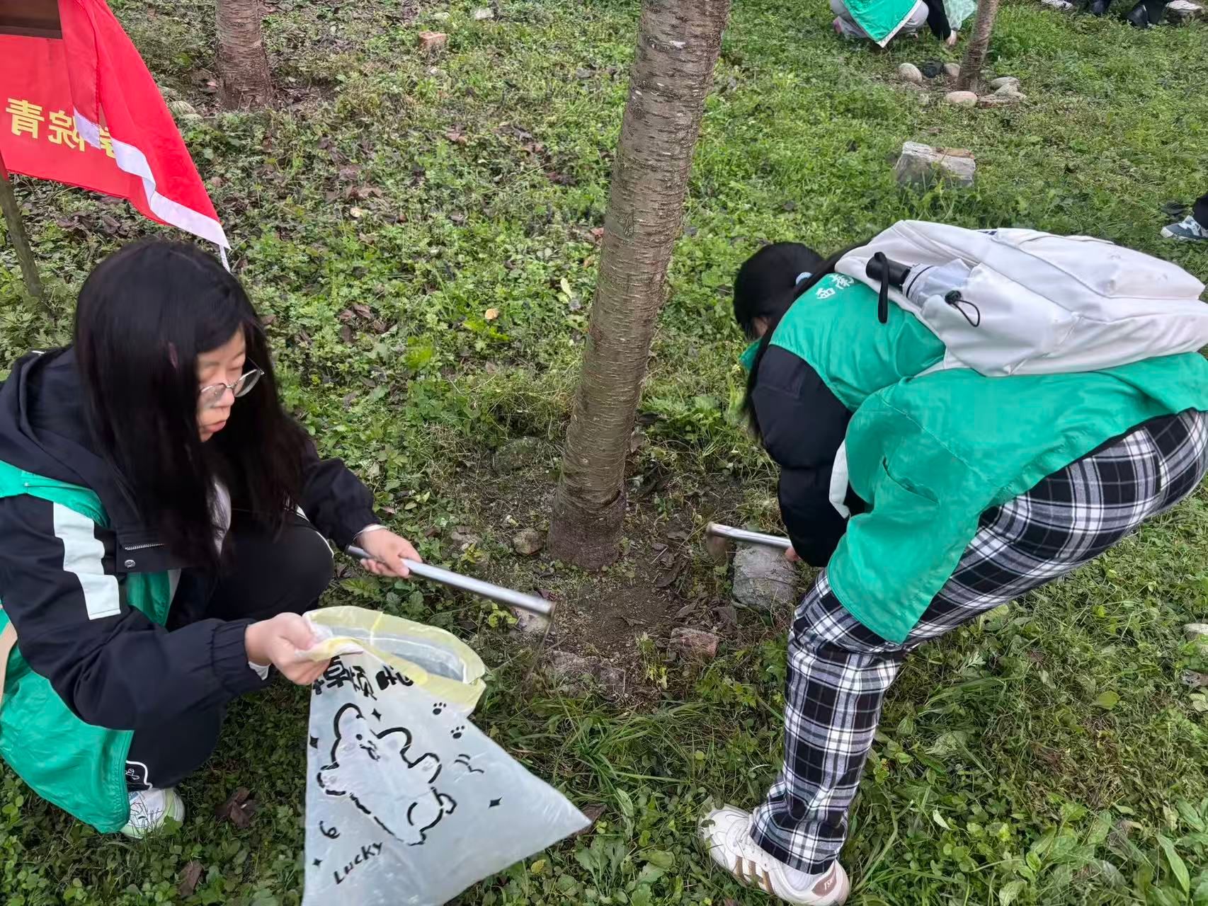 图2:“小法柚”志愿者捡拾杂草