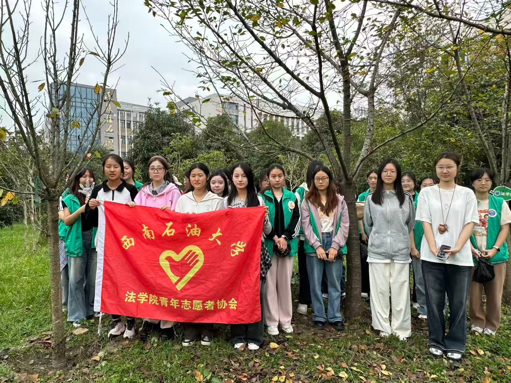 “蝉鸣阵阵,盛夏未央。”2025年5月21日,西南石油大学法学院青年志愿者协会组织 “小法柚” 志愿者,开展五月学子林养护活动。志愿者们化身校园 “绿色卫士”,以实际行动守护学子林的整洁与生机,为校园筑牢生态屏障。