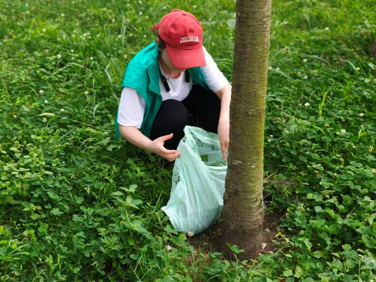 活动伊始,负责人向志愿者们强调了养护重点和安全规范,随后大家便兵分几路,开启养护工作。针对林间杂草丛生的区域,志愿者们分工协作,有的用铲子将顽固杂草铲出,有的徒手清理表层浅草;对于隐藏在灌木丛中的垃圾,大家则俯身探入,仔细捡拾。林间回荡着大家的交流声与工具碰撞的轻响,构成了一曲独特的夏日劳动乐章。