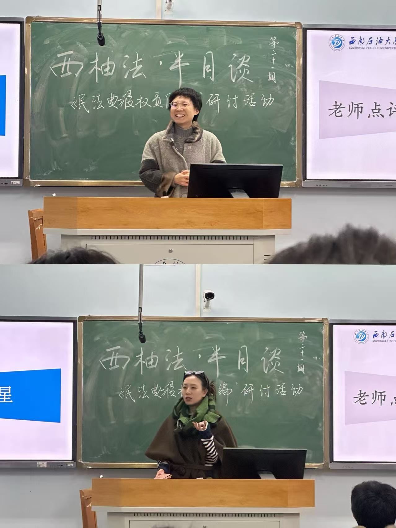 为深化法学专业学子对《民法典》侵权责任编核心制度的理解,搭建理论探究与司法实践对接的学术交流平台,2025年12月23日晚18时40分,由西南石油大学法学院主办、法学院研分会承办的“西柚法·半月谈”第二十一期“民法典侵权责任编”法律研讨活动在博学楼A502顺利开展。严雪凤、李清阳、徐诗雨等六位同学担任分享人,围绕侵权责任领域热点难点问题展开深度探讨,活动特别邀请法学院李欢讲师、罗星讲师担任点评老师。