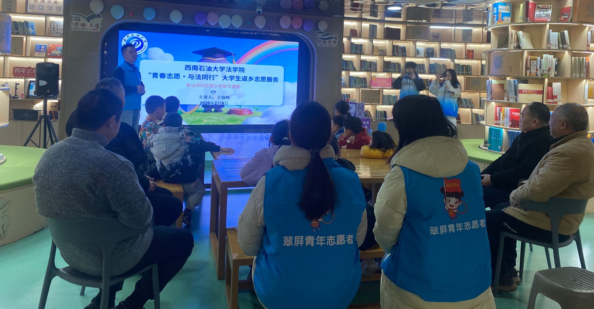 为强化未成年人法治教育,筑牢自我保护防线,发挥法学专业优势,2月9日下午,西南石油大学法学院“柚见三江队”联合一曼老兵志愿服务队,一同走进大观楼街道仁和社区,依托翠屏区团委和社区的“爱心蜀托”志愿服务项目,开展“青春志愿·与法同行”未成年人普法活动。