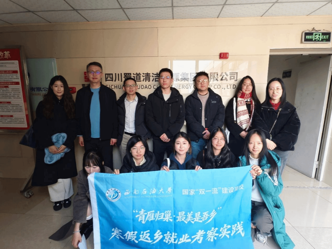 为深入贯彻落实学校“青雁归巢·最美是吾乡”寒假返乡就业考察实践活动部署,引导青年学子在服务地方发展中锚定职业方向、厚植家国情怀,2026年1月15日,西南石油大学“蓉雁归乡”实践队赴四川蜀道清洁能源集团有限公司开展专题调研。本次活动以“人才培养—科研创新—产业升级”为主线,通过宣介交流、需求调研与实地考察相结合的形式,探索校企协同育人的新路径,为清洁能源领域高质量发展注入青春动能。