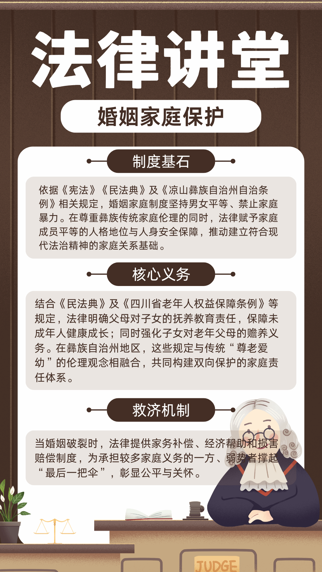 在咨询的过程中,志愿者们发现许多妇女虽然对婚姻现状不满,但由于对法律了解程度不够等原因,往往被迫选择隐忍。为此,团队专门制作了《婚姻家庭普法宣传单》,以图文并茂的形式,内容涵盖制度基石、核心义务、救济机制等常见问题,并在咨询过程中免费发放。