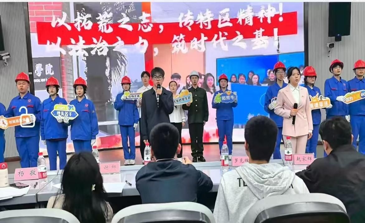 本剧以沉浸式舞台演绎、通过情景再现与集体朗诵相结合的形式,讲述了卫德佳教授潜心拓荒能源法学、勇毅革新研究成果,最终完成专著出版与新能源实验室申报的奋斗事迹,彰显了“敢闯敢试、敢为人先、埋头苦干”的特区精神,展现了法学院深耕能源法治、传承红色基因、践行育人使命的责任担当。