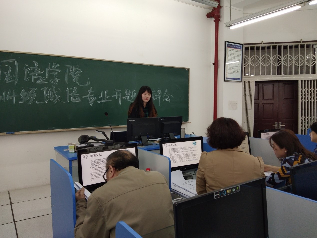 为了提高本科毕业论文的写作水平,保证论文质量,2018年3月29日下午2:30,俄语专业教研室在思学楼B103和B105举行了2018届本科毕业论文答题答辩会。 2014级49名本科毕业生(个别同学因参加研究生复试而申请缓期答辩)及教研室11名老师参与了此次答辩会。
