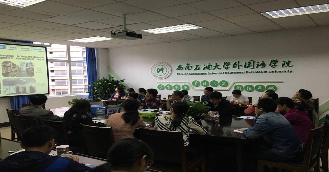 9月25日,外国语学院本科教学审核评估迎评工作校内专家调研工作汇报会在成都校区思学楼AB406举行。西南石油大学教指委专家组一行4人,外国语院党委书记杜宗良、外国语副院长(主持工作)吕旭英,各教研室主任、副主任,教师代表参加了会议。