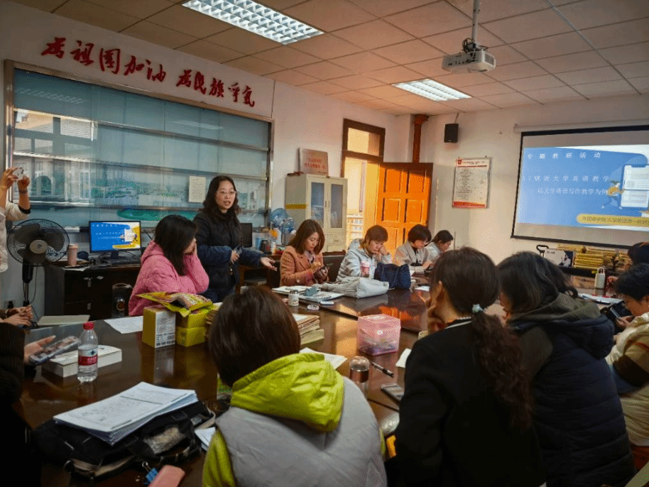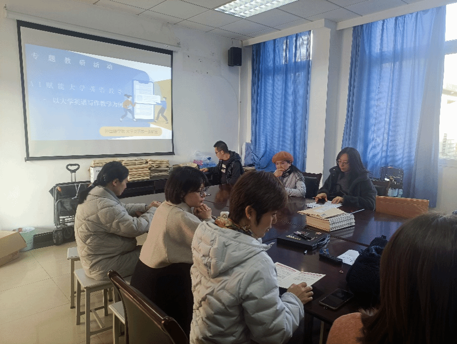 为积极响应学校关于组织开展“AI赋能教育教学暨产教深度融合”主题研讨活动的号召,深入探索人工智能与外语教学深度融合的创新路径,我院大学英语第一教研室于2025年11月20日成功举办了一场内容丰富、成果丰硕的主题研讨活动。本次活动邀请徐继菊、罗琴琴、张宇星三位老师进行专题分享,教研室全体教师齐聚一堂,共话AI赋能教育新未来。