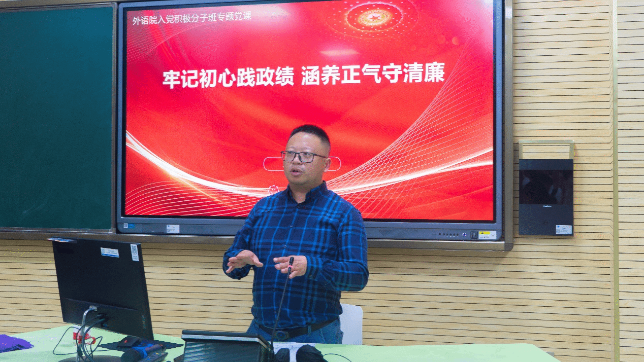 为引导青年学子树立正确政绩观,筑牢廉洁思想防线,4月20日晚,外语院党委副书记、纪委书记周永华在思学楼B107为全体入党积极分子讲授“牢记初心践政绩,涵养正气守清廉”专题党课,切实强化青年学子的廉洁自律意识与责任担当。