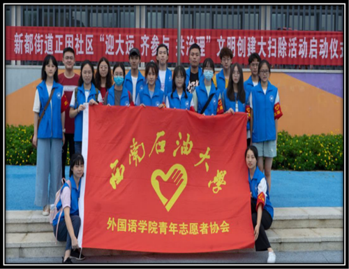 2022年4月23日,外语院的志愿者们汇聚在新都街道正田社区开展了“迎大运,齐参与,共治理”的文明创建大扫除活动。为迎接即将到来的世界大学生运动会做好充分准备。