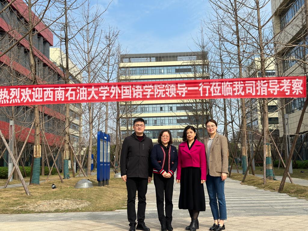 在成都集智享科技有限公司,总经理薛海龙接待了姚明淑、吕旭英一行。吕旭英介绍了西南石油大学外国语学院的办学历史、校本特色和2023年毕业生规模,希望在帮助语言类毕业生拓宽传统就业渠道的同时,结合跨境电商直播、传统文化对外交流等新兴热门领域,拓展更多的就业机会。随后双方探讨了计算机辅助翻译实验室、语音实验室建设的合作问题。双方认为在拓宽外语人才就业渠道、提升外语人才培养质量等方面,有广阔的合作前景。