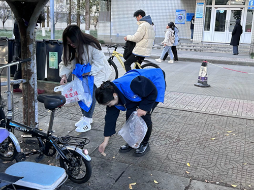 到达指定地点后,在工作人员的组织分工下,志愿者们身着统一服装,有序开展校园环保活动。清理落叶、捡拾垃圾、整理乱停车辆……志愿者们耐心细致,一丝不苟,共同携手美化校园环境。